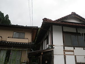 まず解体対象の上屋と、施主様の住まれている上屋の軒同士が重なっていた為、解体する上屋の軒を手作業で丁寧に撤去しました。