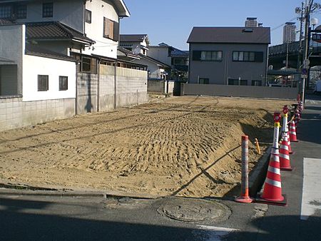 道路に面しているが隣地が広く4tダンプが使えやり易い現場でした。