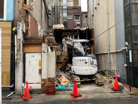 大きい機械で壊すと近隣からの振動のクレームの元になるのでなるべく小さい機械で解体工事を行います!