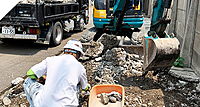 さらに、工事中は近隣の方への影響を配慮し、安全な工事を行います。 例えば、子供達が道路に通りかかった時には作業の手を止めたり、工事完了後には道路の清掃を必ず行う為、近隣の方にご安心いただけます。
