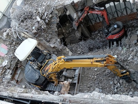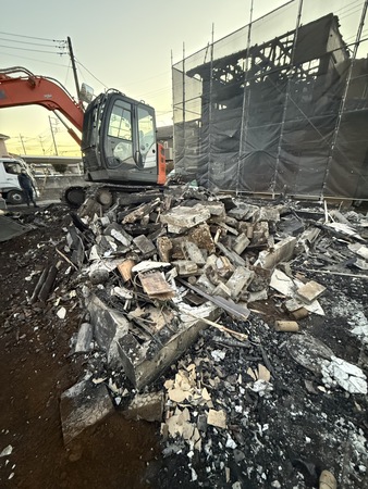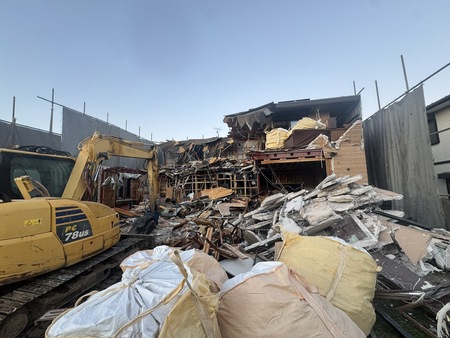 重機を使用して解体作業を進めています。
