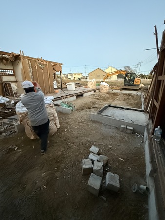 重機作業と手作業を適切に使い分けて解体を進めています。